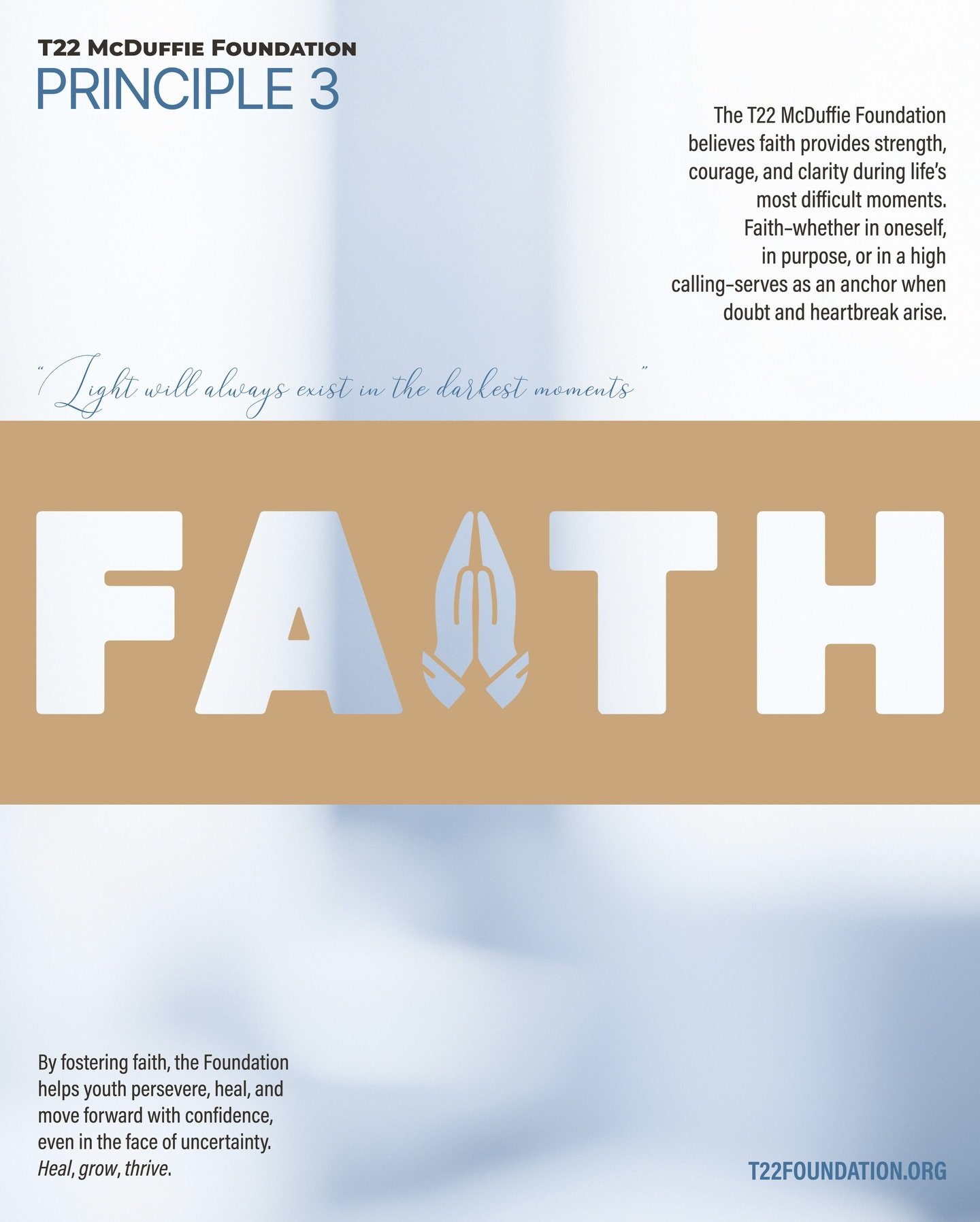 At the core of the T22 Foundation are our principles that guide us in our commitment to providing healing and hope, offering a pathway to overcome adversity together.